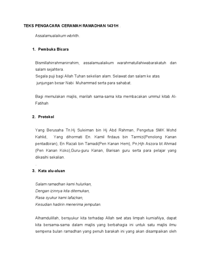 Web Dengan berdoa sebelum pembukaan majelis kita berharap kepada Allah SWT untuk senantiasa merahmati meridhoi acara kita. Teks pengerusi majlis ceramah agama. Web TEKS UCAPAN ALUAN YANG BERBAHAGIA DATO DR.